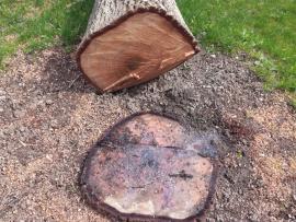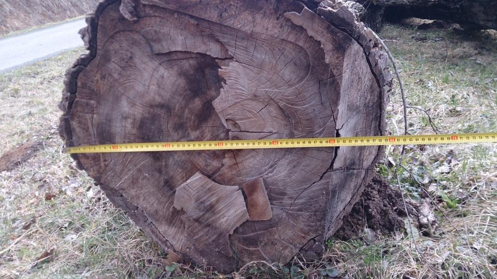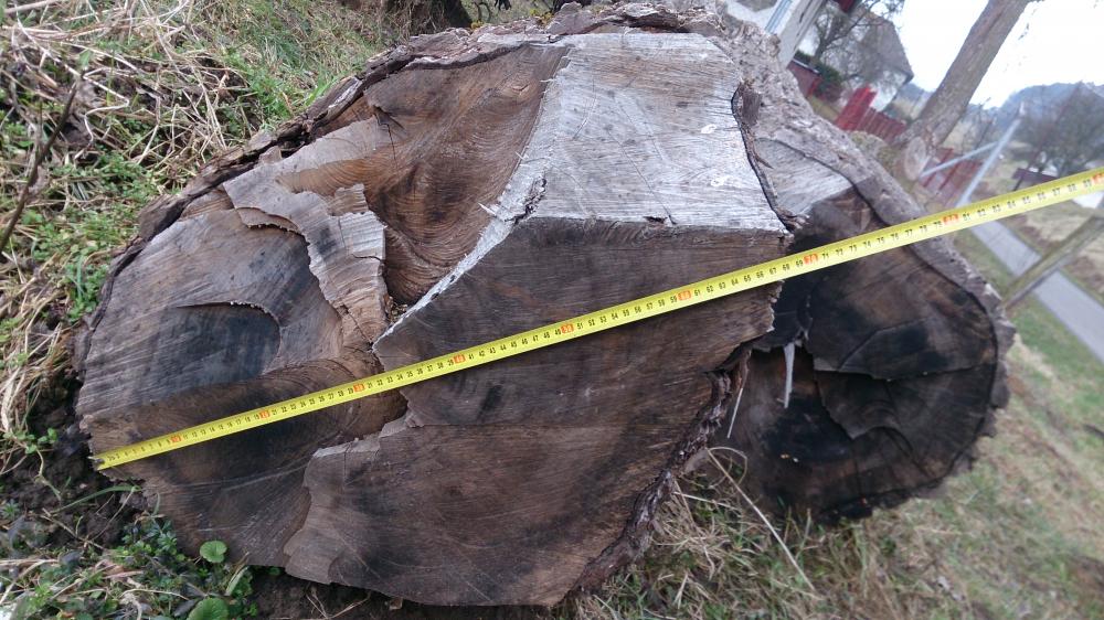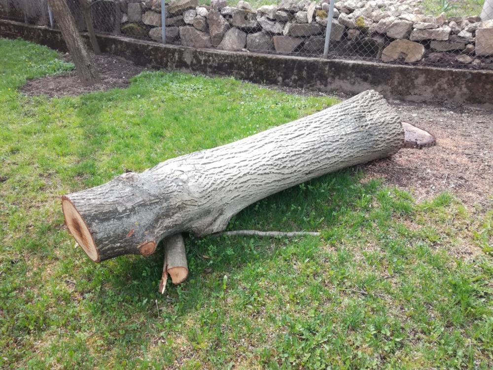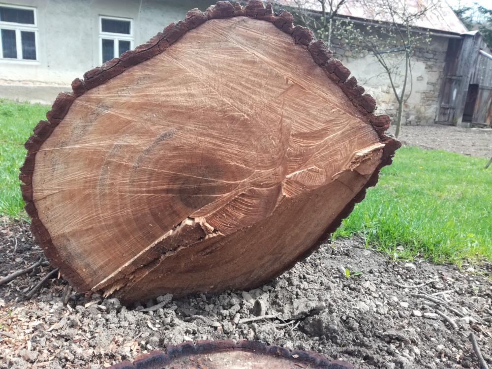 Zdravý kmen ořechu 0,5m široký, 1,2m dlouhý.