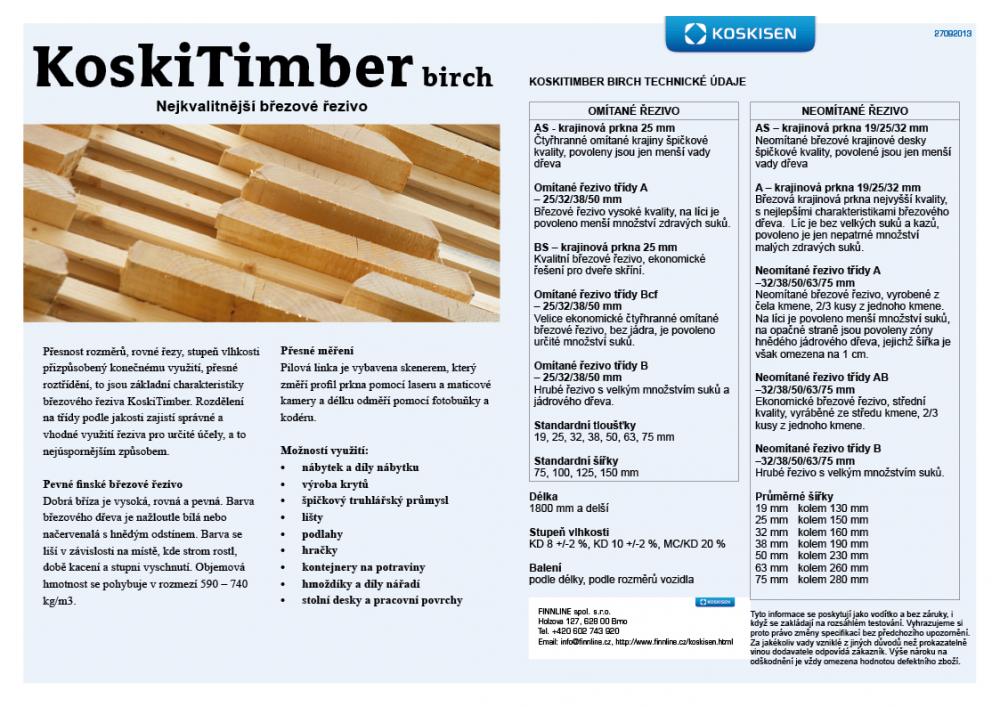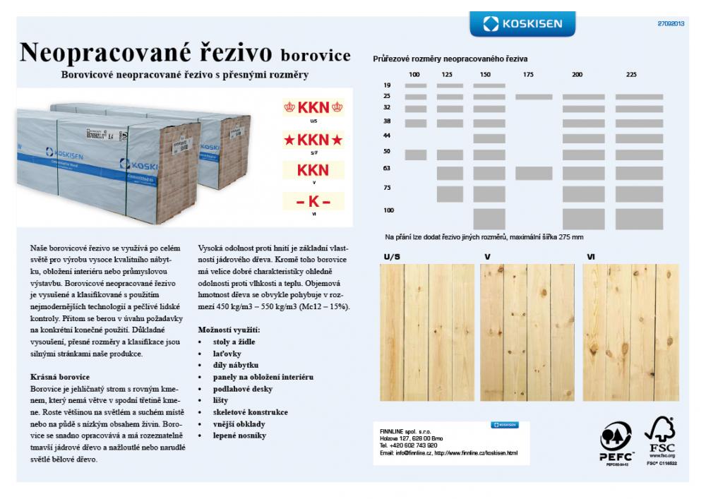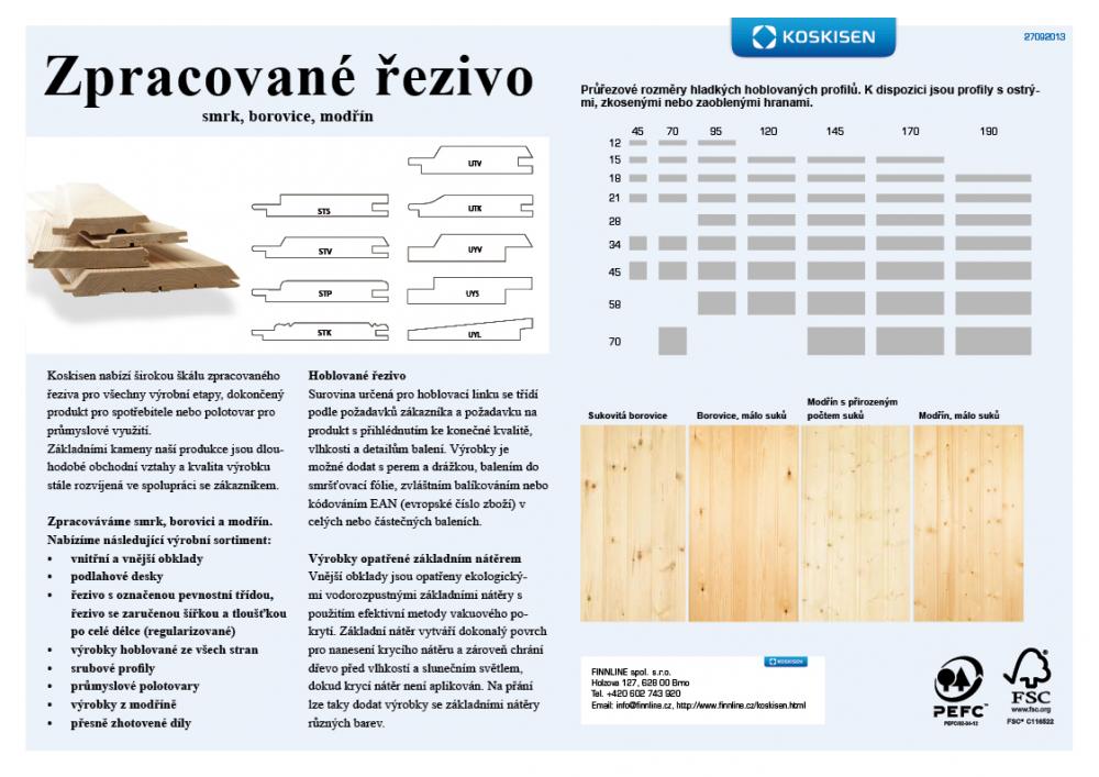Koskisen Oy nabízí také na základě kontraktu i jiné rozměry borovice, smrk, bříza.