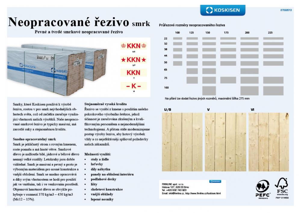 Kosksien Oy standartně opatřuje své řezivo třídou pevnosti - velmi vhodné pro pevnostní konstrukce. Řezivo má značku CE.