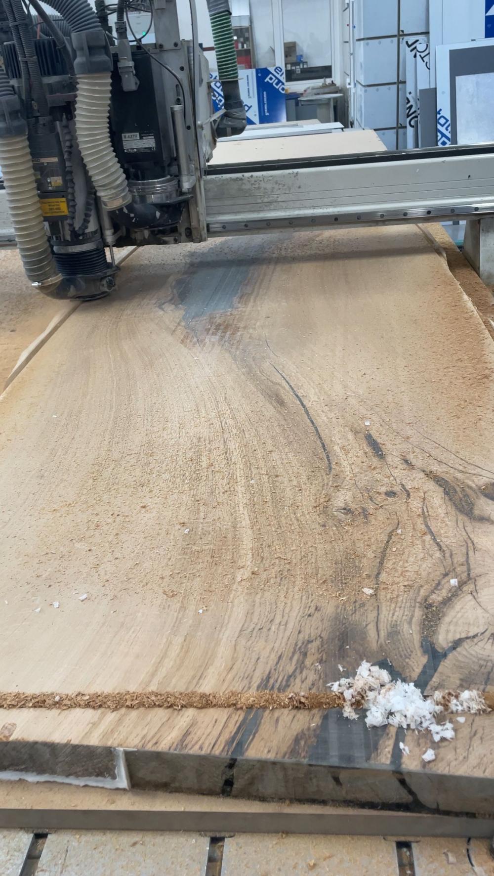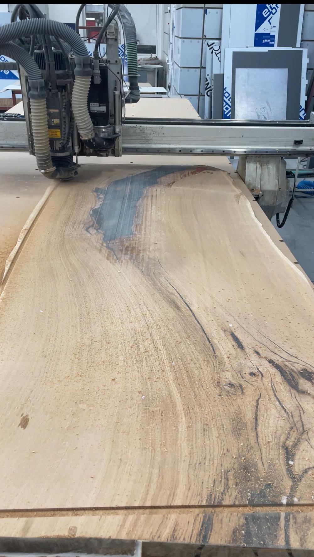 Rovnako ponúkame celoplošné zrovnávanie dreveného masívu veľkých rozmerov, vrátane akrylom vylievaných dosiek pre stoly a úpravy do finálneho tvaru.