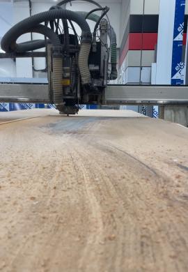 Ponúkame CNC tvarové opracovanie a spracovanie veľkoplošného materiálu s vysokou presnosťou aj pri náročných tvaroch. Naše CNC obrábacie centrum nám umožňuje spracovávať materiál s maximálnymi rozmermi 1840x5400mm a hrúbkou do 130mm. Opracovávame plošné materiály na báze dreva (HDF, MDF, DTD, OSB a pod.), HPL dosky hrúbky 4mm-12mm a tiež kompozitné dosky (bond).