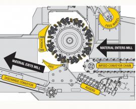 Jedná se o drtič se systémem pro rychlou výměnu hřídelí. Používáme hřídele pro drcení biomasy a hřídele pro drcení betonu, sutin, kameniva.