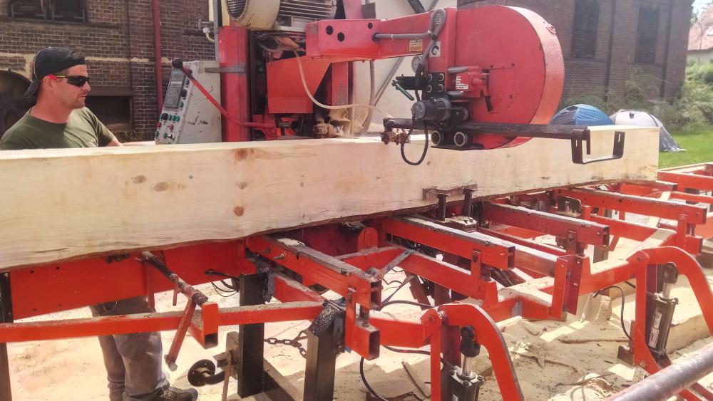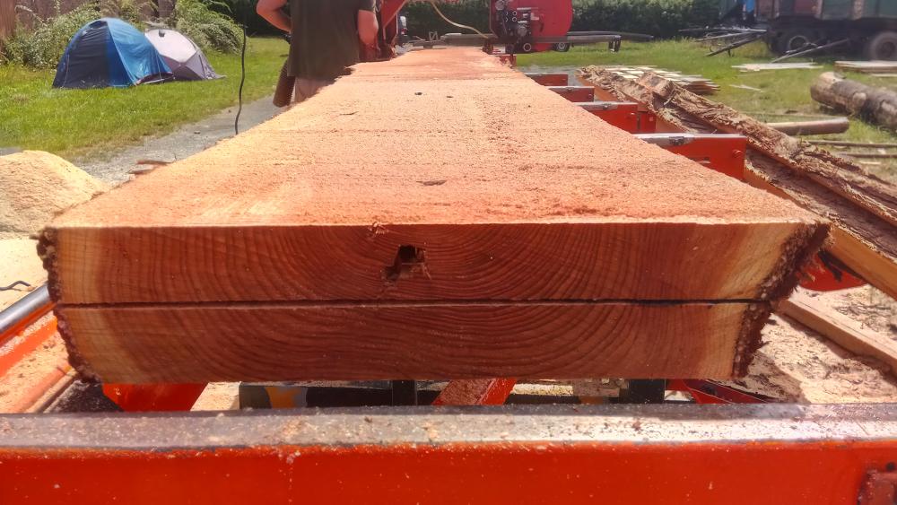 automatickým posuvem a přesným řezem. Z vaší složené kulatiny na zahradě nebo v lese vyrobíme hodnotné stavební řezivo, jako jsou trámy, fošny, hranoly, nebo latě. Zpracujeme tvrdé i měkké dřevo délky 9,5m, průměru 80 cm.