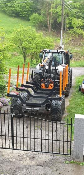 Štiepkovač je obsluhovaný autom s hydraulickou rukou a štiepačom nadrozmernej hmoty - vieme spracovať aj nadrozmery, dĺžka dreva od 2 metrov.