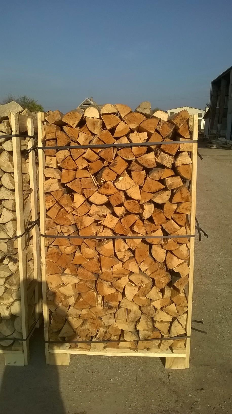 Forma: štípané, polena 33 cm, skládané (na paletách o objemu 1 - 2 prm, poctivě vyskládané palety)