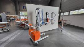 Univerzálne paletovacie stoly na zbíjanie drevených paliet s pneumatickým ovládaním. PT-1900 na maximálne rozmery palety 1900 x 1300 mm cena: 8.550,-€ (bez DPH) V cene stolov je montáž a zaškolenie obsluhy priamo vo vašej prevádzke v rámci SK a CZ. Stoly nahrádzajú šablóny na palety pracovisko obsluhované jedným pracovníkom zvyšuje efektivitu práce rýchle prestavovanie rozmerov paliet pneumatické zatláčanie prvkov palety pneumatické vytlačenie hotovej palety klincovačky zavesené na balanséroch hmotnosť stola: 300kg potrebný tlak vzduchu max. 8 bar Konkrétny príklad efektivity z praxe pri výrobe palety 800x1200 mm. V klasickom systéme dvoch pracovníkov na pracovisku vyrábal náš zákazník okolo 240 paliet za smenu. Na paletovacom stole vyrába jeden pracovník okolo 220 paliet za smenu. Návratnosť investície do 1 roka. Viac informácií na linku: https://profixrd.sk/obchod/paletovacie-montazne-stoly/paletovaci-stol-pt-1900-pneumaticky/