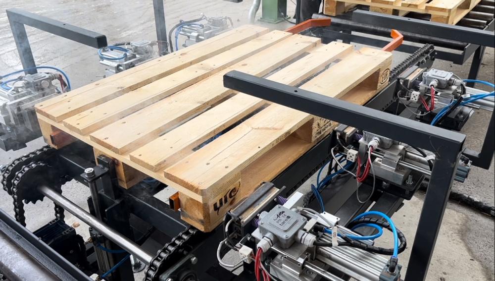 Stroj na automaticke vypalovanie/značenie paliet