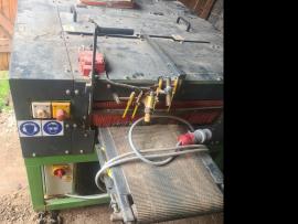 Je napojený, dá sa odskúšať. Všetky tlačítka sú vymenené za nové. Nové ložiská na hriadeľoch aj elektromotoroch, nové klinové remene, maznice, zvukovo zatlmená, Funkčné odsávacie krity, lámače triesok, všetko potrebné je porobené. Je na nej 360° suport na piaty hriadeľ, len chýba hriadeľ a elektromotor. Pneumatický prítlak, 2m zrovnávací stôl.Je osadená dvomi hobľovacími hlavami 150mm a dvomi 125mm. 4xmotor 4kw+ motor na posuv.