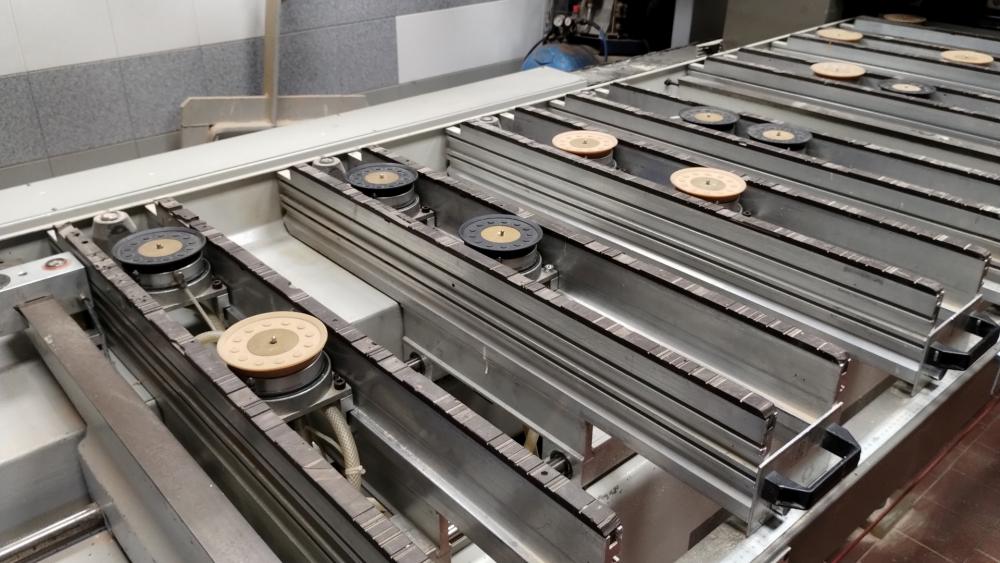 - dosku je možné odoberať priamo z podlahy a z na to určených vozíkov na prepravu a skladovanie nábytkových dosiek. To chráni dosky pred poškodením.