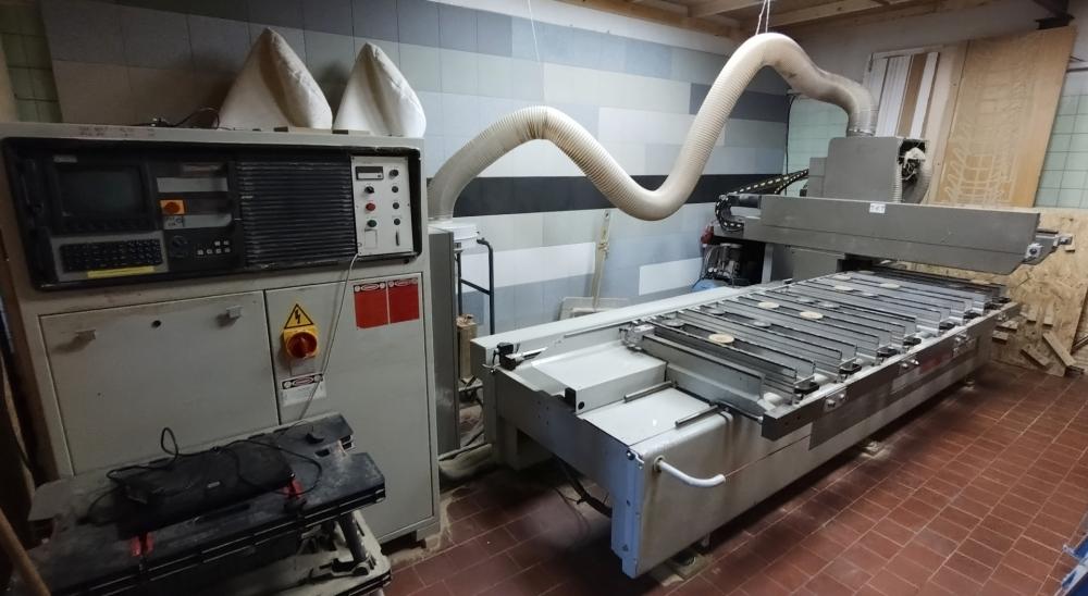 Funkční CNC s přířezem, vývěva a vozík pro převoz desek. Ke stroji jsou originální šanony s dokumentací, floppy disk se softwarem stroje a sada nástrojů (vrtáky, frézy). Programy na CNC lze nahrávat pomocí RS-232, spouštět z disket přes integrovanou disketovou jednotku, anebo je psát přímo na stroji.