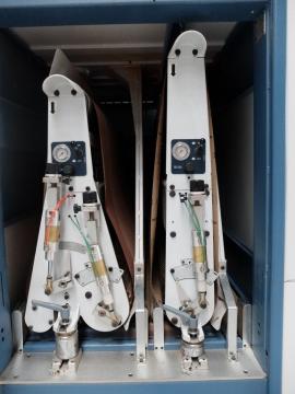 Predám CB 1100mm - talianska širokopásová brúska šírky 1100mm v konfigurácii s dvomi jednotkami - kalibračným valcom a kombi jednotkou na brúsenie masívu a prácu s dyhou, posuv 2 rýchlosti, elektronický zdvih, digitálny ukazovateľ, ofuk pásov, časovač prískoku a odskoku pätky. Minimálna dĺžka dielca iba 400mm. Motor 17kW. Cena 9300 Euro, ponuka platí do vymazania inzerátu.