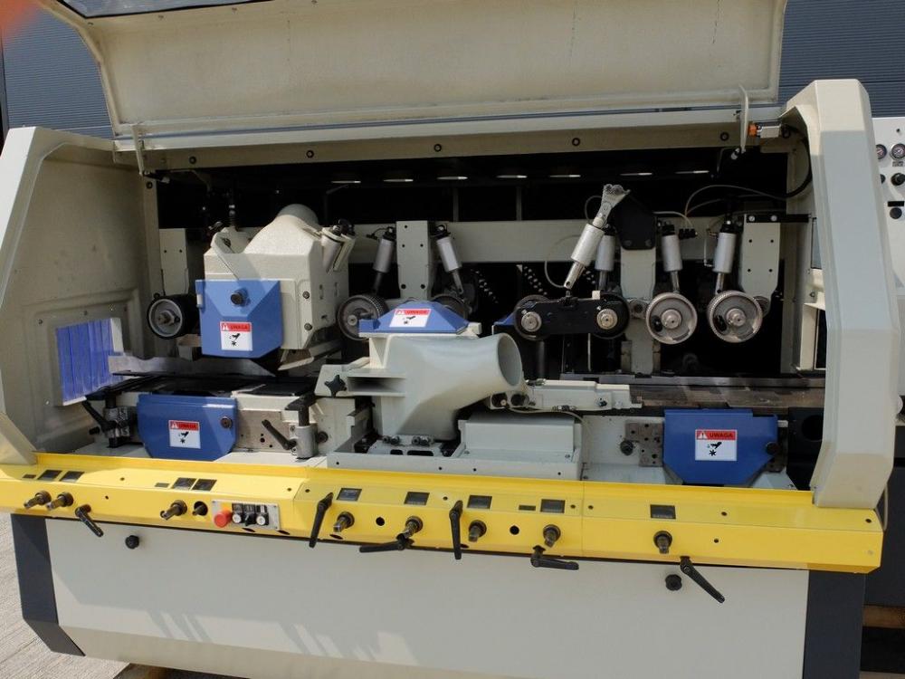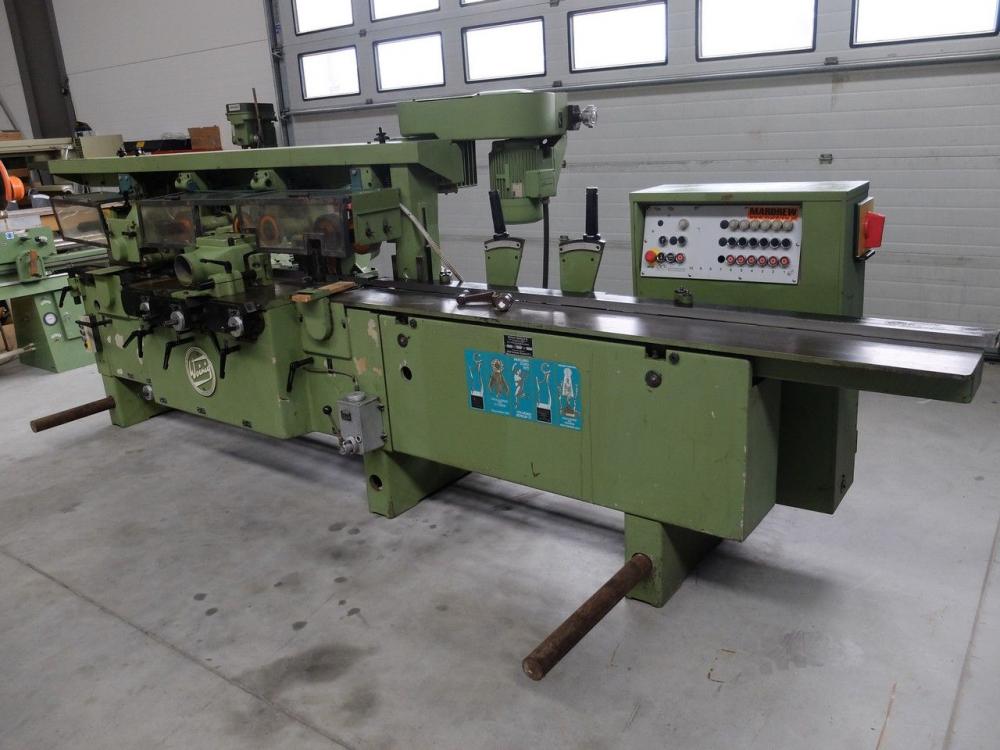 Predám profilovaciu štvorstránku kompaktného rozmeru Weinig Profimat 23, využitie pre hobľovanie aj profilovanie, 5 vretien: spodné-pravé-ľavé-horné-spodné. Max. šírka 230mm, max. výška 130mm, priemer vretien 40mm, plynulá regulácia posuvu, prevod cez kardan. Každé vreteno má samostatný motor. Dĺžka iba 3800mm. Celkový príkon 30kW. Profesionálny stroj, výborný stav a výbava, široké možnosti využitia. Cena 13000 Euro. Ponuka platí do vymazania inzerátu.