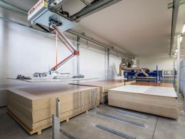- výroba stien na montovane domy z CLT panelov, rámovej alebo zrubovej konštrukcii.