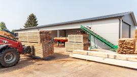 Za pilou je modulární třídící stůl pro automatizovaný příjem materiálu a jeho směrování k dalšímu zpracování. Jednotlivé moduly (každý 3 m dlouhý) lze spojovat do skupin maximální délky 9 m (celkem 3 moduly). Tyto skupiny lze násobit k vybudování třídících skládek. „V Nowakowského firmě jsou třídící stoly elektrické s příčnými řetězy a posunovači. Stůl může být volitelně vybaven řetězy aktivovanými pneumaticky nebo hydraulicky. To je doporučené řešení pro linky, u kterých je materiál odebírán ze dvou nebo více pil pracujících vedle sebe,” vysvětluje Adam Kubiak.