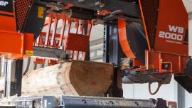 Jednou z nejcennějších částí pilařské linky WB2000 je plošina na kmeny pro for rychlé a bezpečné zakládání kmene na lože. Plošiny Wood-Mizer jsou k dispozici v délkových verzích 3,6 m a 6 m se 2 nebo 3 dopravními řetězy. “Někdy firmy objednají speciální uspořádání dvou plošin, při kterém je jedna umístěna za druhou. Kratší plošina je osazena uvnitř výrobní haly a delší je venku. Venkovní plošina je využita pro uložení kmenů dostačujících pro jednu pracovní směnu a kratší pro zásobu 2-3 kmenů pro okamžité zakládání na lože pily. Je to chytrý způsob jak omezit otevírání a zavírání výrobní haly v zimě a ušetřit nějaké teplo,” vysvětluje Adam Kubiak. Plošina na kmen je také nabízena v nejnovější Heavy-Duty verzi se zvýšenou odolností.