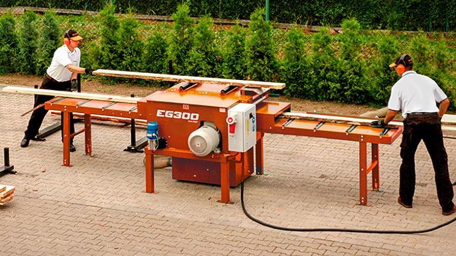 Wood-Mizer EG300 je cenově dostupná a vysoce produktivní kombinace omítačky a multiripu, která maximalizuje využití každého prkna a zvyšuje produktivitu pily. Jako omítačka používá EG300 dva pilové kotouče, jeden pevný a druhý stavitelný, zatímco jako multirip má až pět pilových kotoučů.