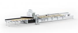Posuv v pozdĺžnom smere obrobku (os X) sa uskutočňuje pomocou polohovacích zarážok. Na upnutie obrobku pred a za pílovým agregátom možno použiť širokú škálu možností prítlaku.