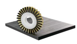 Špeciálne leštiace kotúče z vlákien a polyamidu dokonale fungujú aj so všetkými bežnými materiálmi a hranami veľkoplošných materiálov a vďaka nim je štandardná leštiaca jednotka nepotrebná, možno ju nahradiť HOLZ-HER „Texture Finish“.