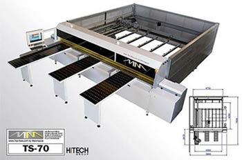 Nárezové centrum Macmazza model TS 70 svojou výškou rezu 70 mm a dĺžkou rezu 4250 mm patrí medzi najväčšie a najrobustnejšie píly vo svojej triede. Rýchlosť pílového vozíka je plynule regulovaná frekvenčným meničom v rozpätí od 0 do 40 m/min.
