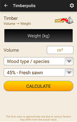 Gewicht- und Volumen-Konverter für Rundholz, Balken und Nutzholz